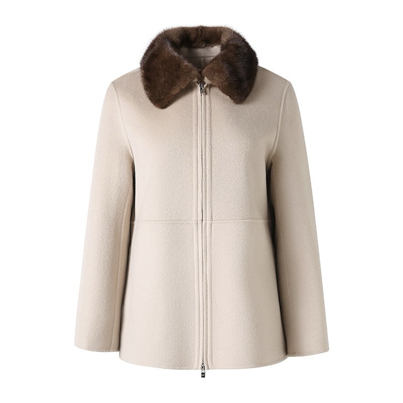Wool x cashmere blended with mink trim